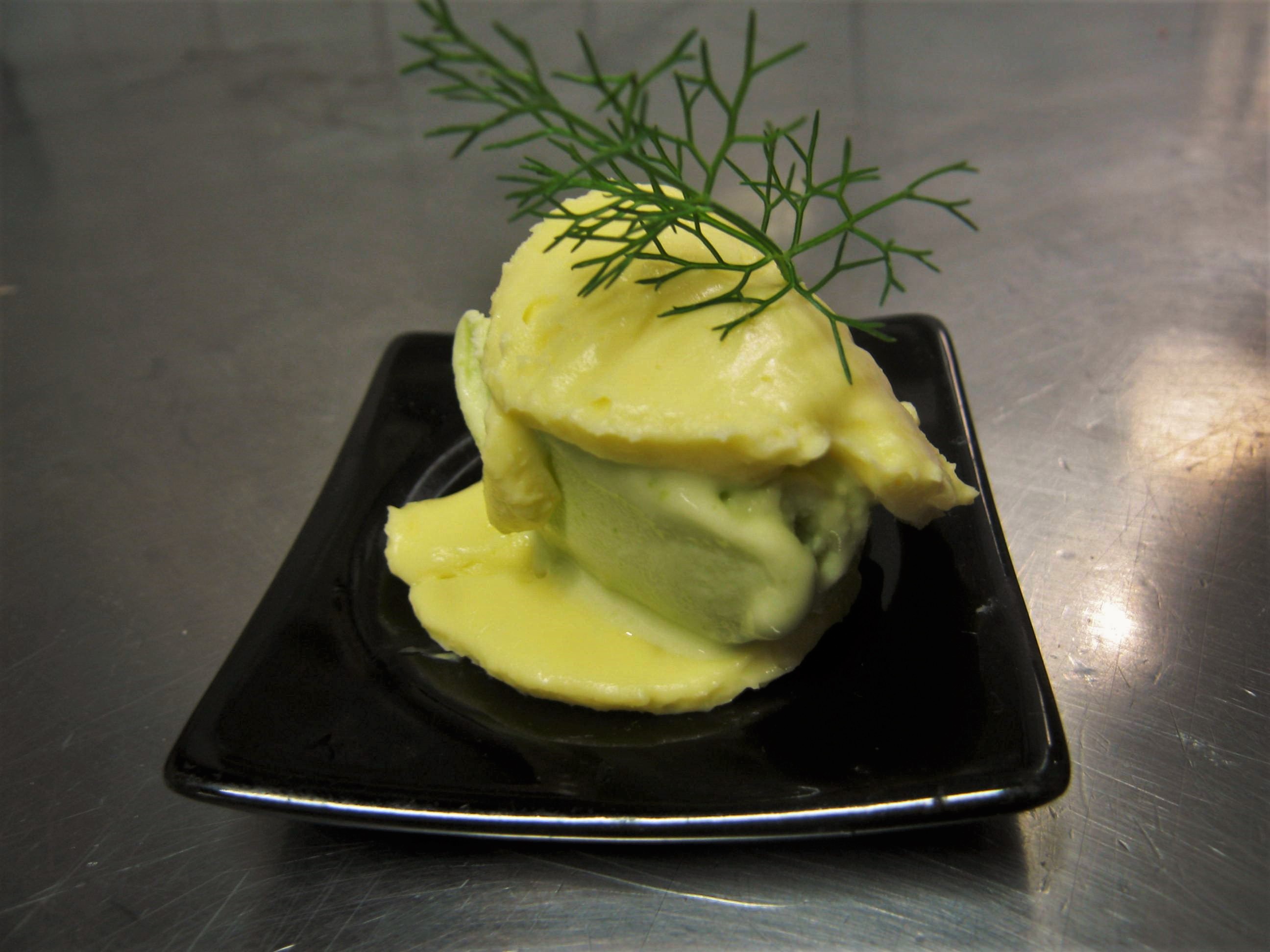Il gelato alle fave con morbido di pecorino