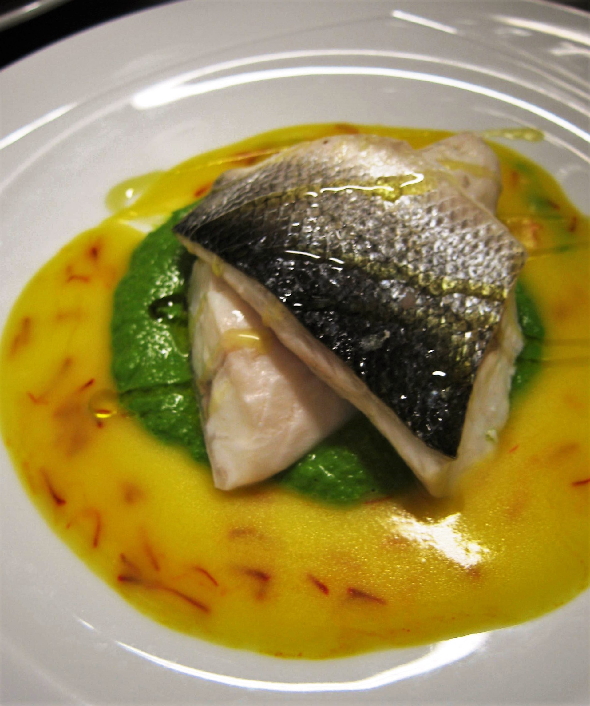 La scaloppa di branzino al vapore con purea di lattuga romana