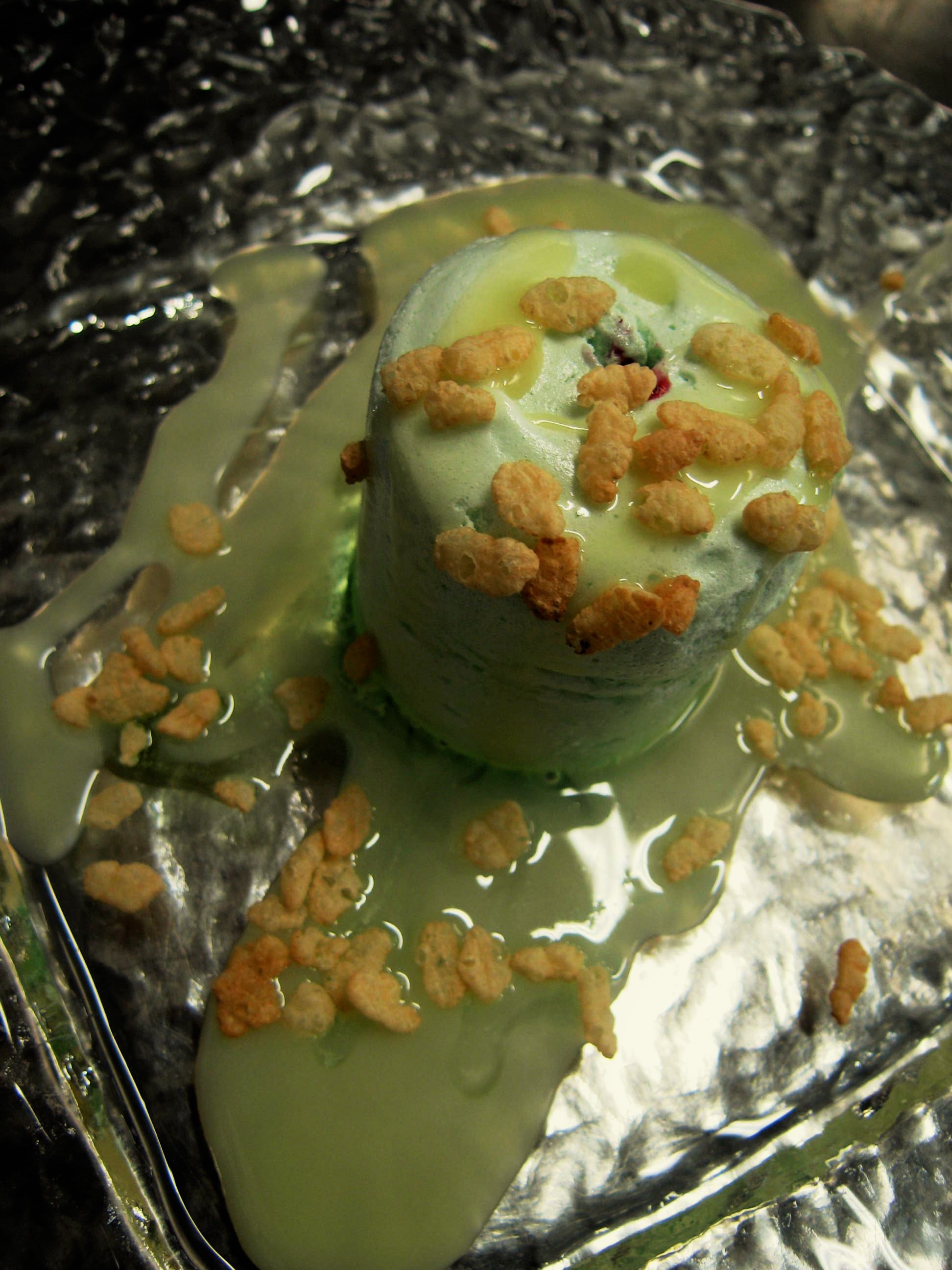 La meringa alla menta con cuore di lampone e