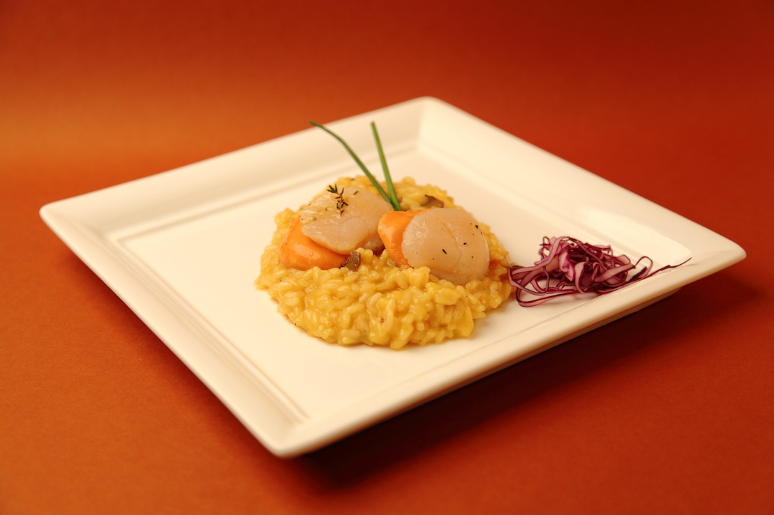 Risotto con peperoni gialli di Voghera, capesante e tartufo nero.