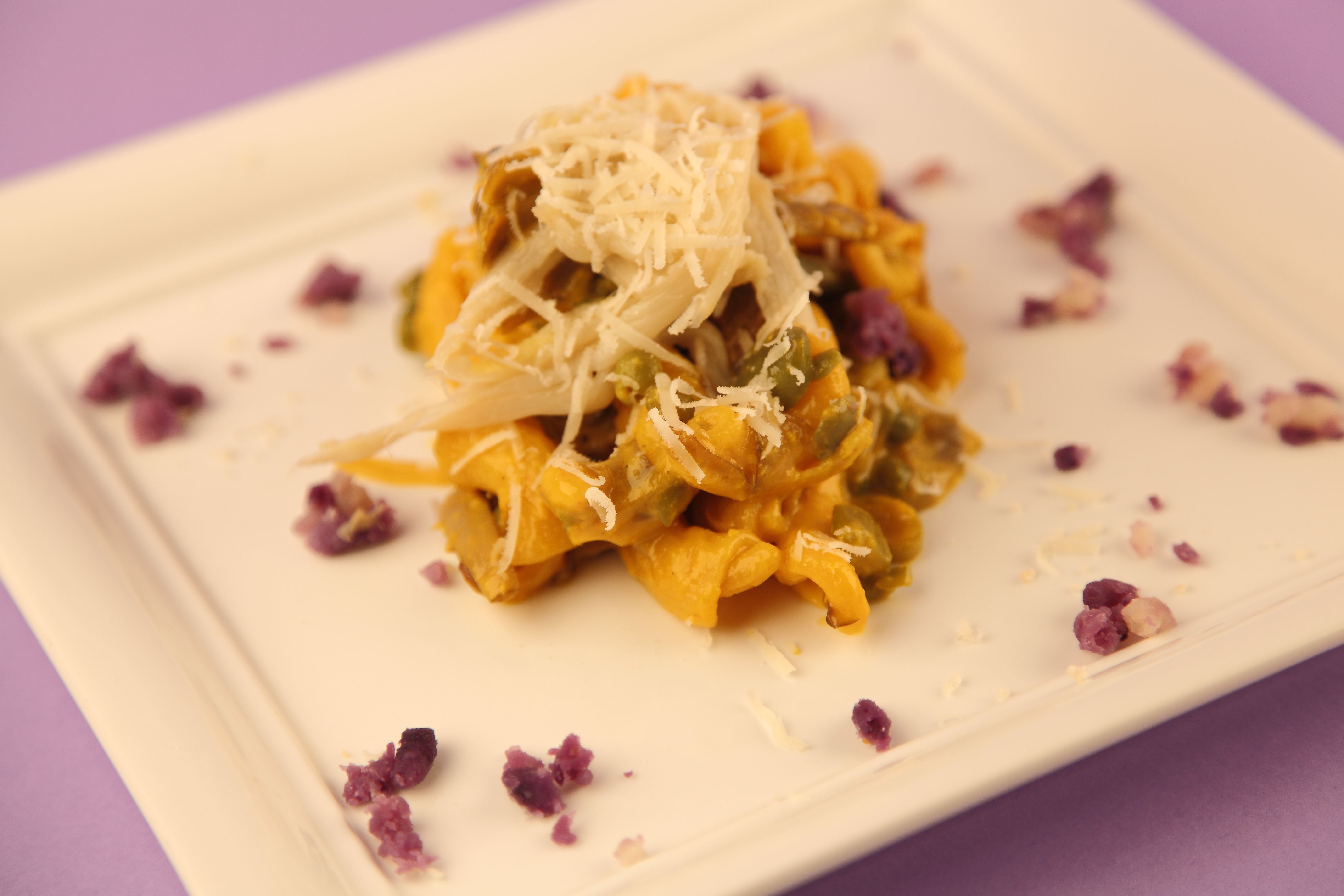 Maccheroncini al torchio con Carbonara di verdure.