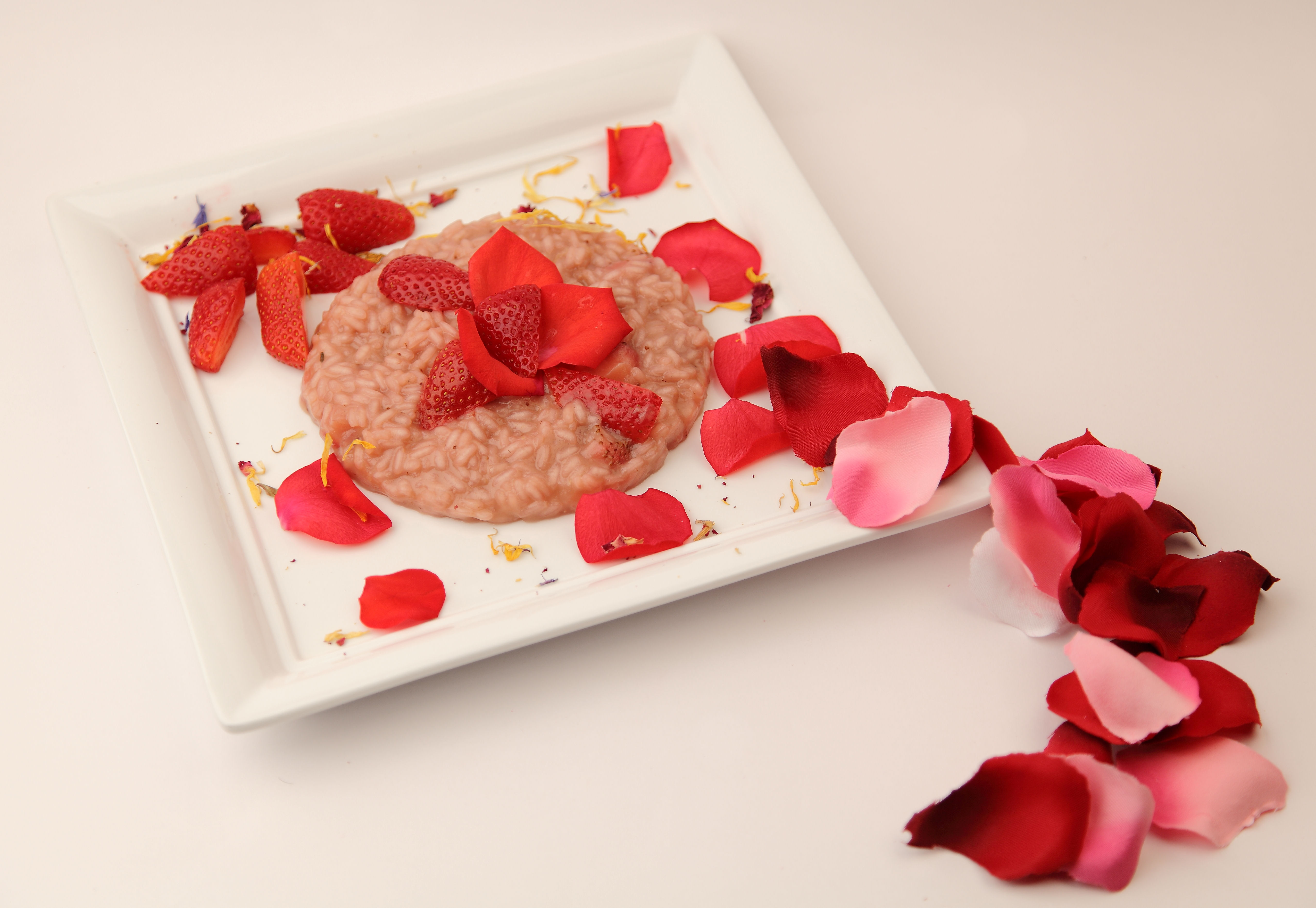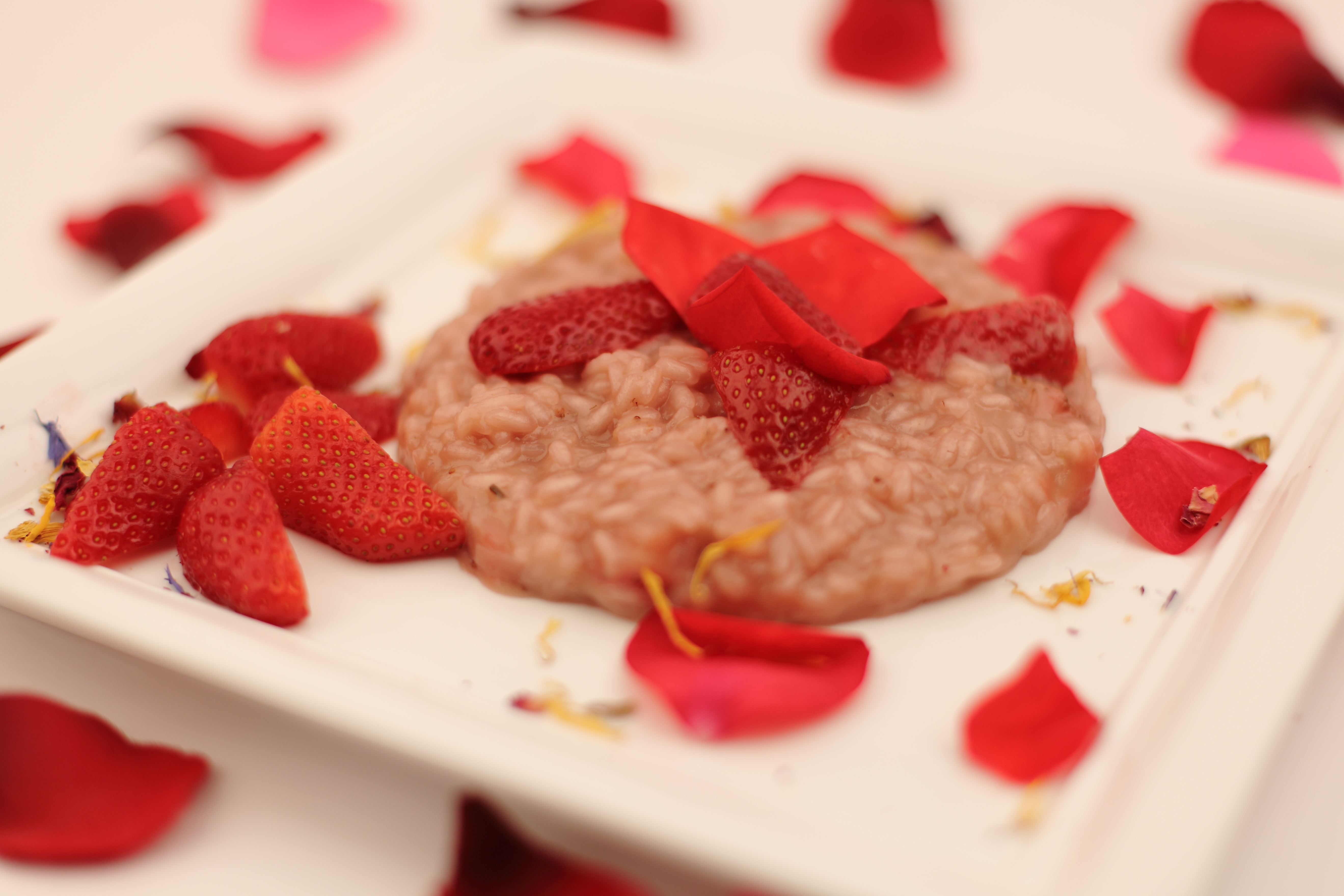 Risotto alle fragole e petali di rose