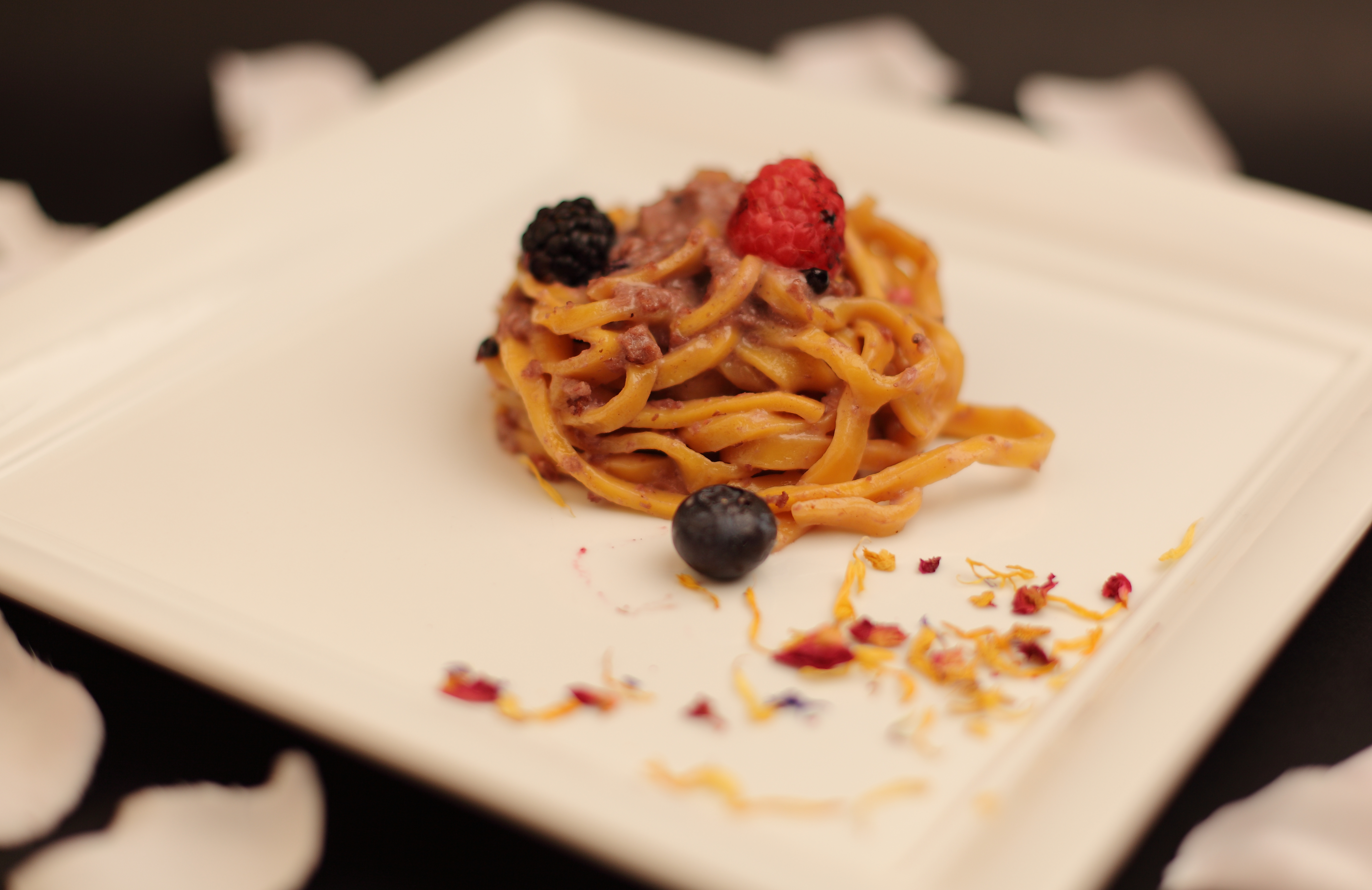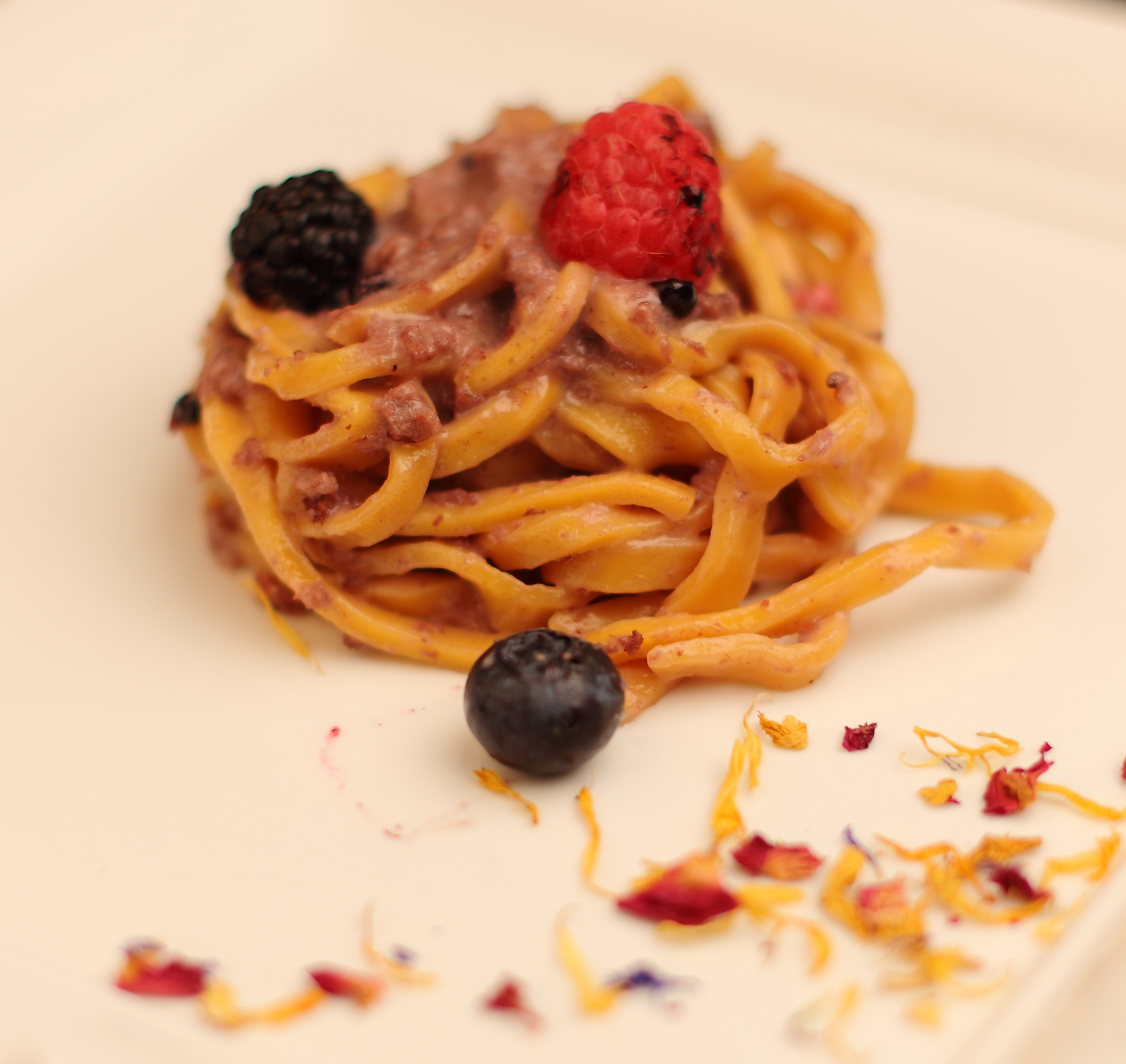 Tagliolini salsiccia e frutti di bosco.